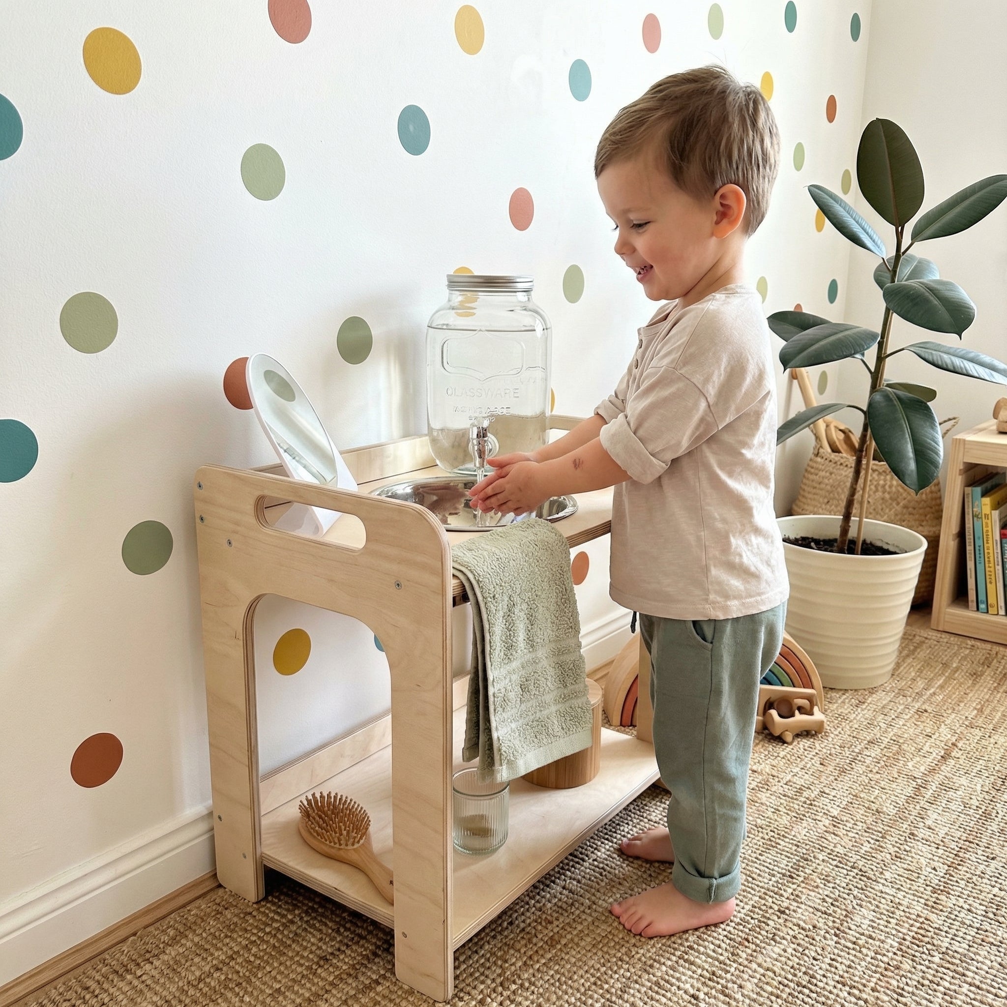Montessori Wooden Washbasin – Kids Sink with Storage Shelves
