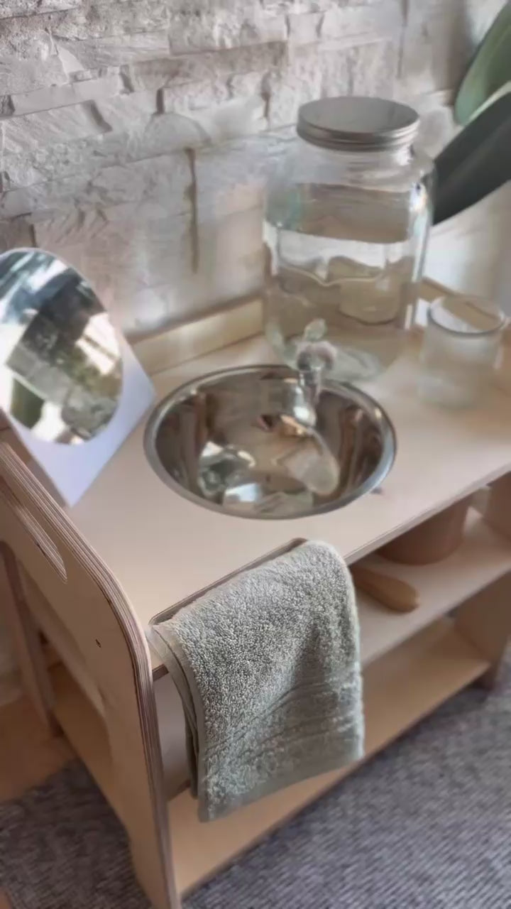 Bring independence and natural beauty to your child’s daily routine with this handcrafted wooden Montessori washbasin.