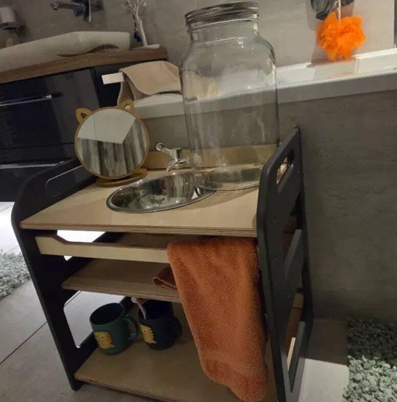 Bring independence and natural beauty to your child’s daily routine with this handcrafted wooden Montessori washbasin.
