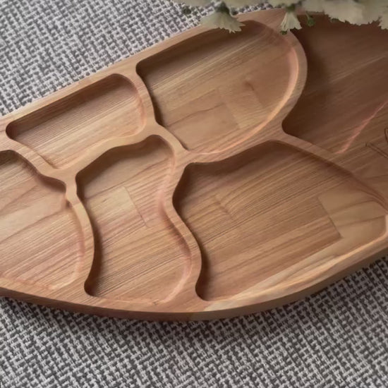This handmade oak serving board with 6 compartments is perfect for presenting cheese, meats, nuts, fruits, or sweets. Each board is crafted with care in our small family workshop and finished with natural food-safe oil to highlight the warm texture of oak.