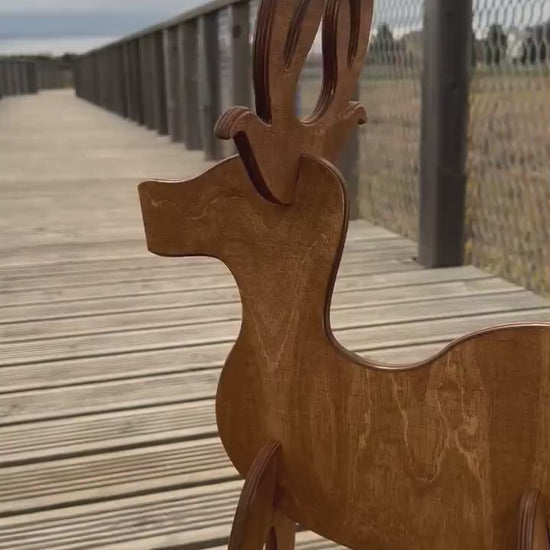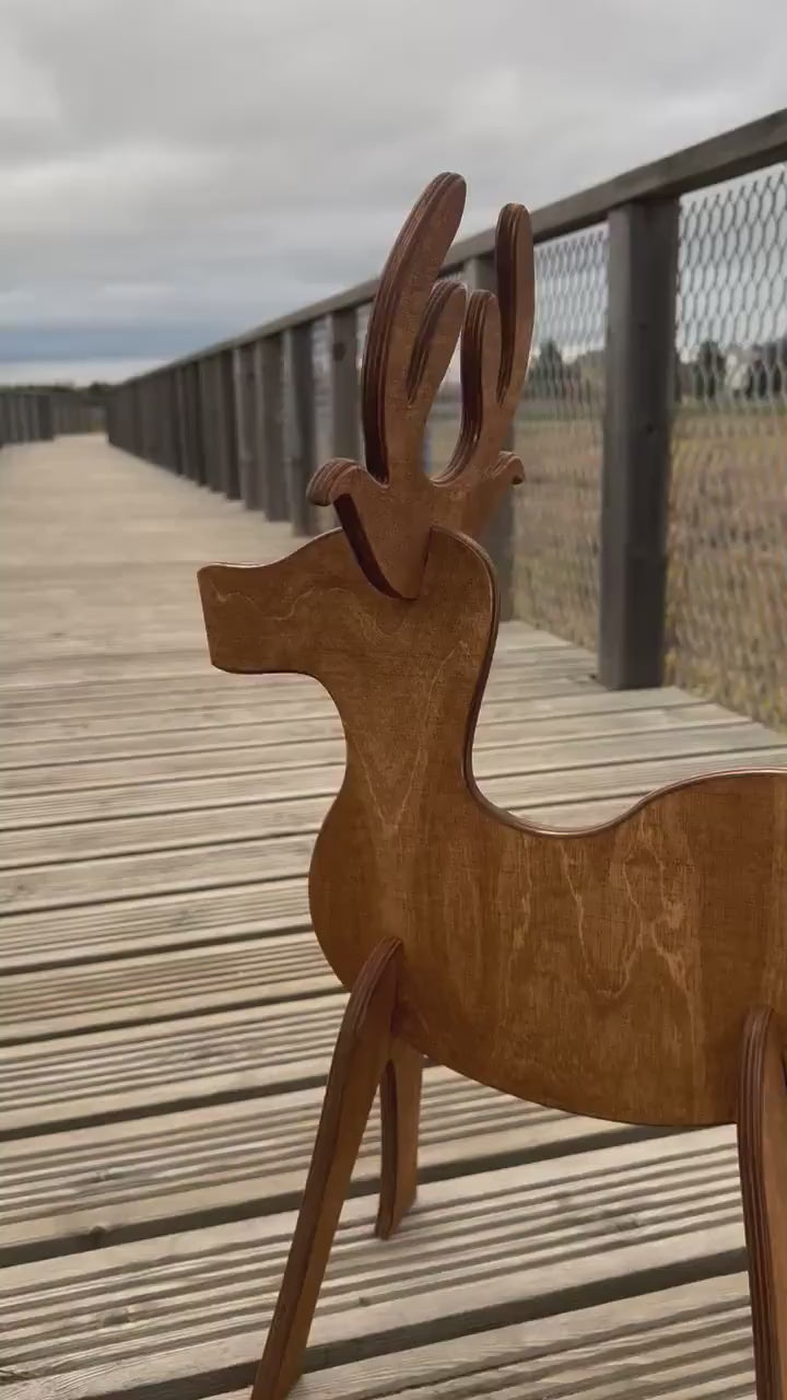 Rustic Wooden Reindeer Christmas Decoration – Indoor & Outdoor Holiday Decor, Festive Yard Display, Unique Reindeer Ornament